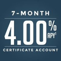 213-Month certificate account only. APY = Annual Percentage Yield. 4.00% dividend rate. Membership savings account required. $1,000 minimum deposit. Maximum $1,000,000 per household. Rates effective 04.01.26 and subject to change at any time. Penalty for early withdrawal. Will renew to the 12-month certificate account if auto-renew is chosen.